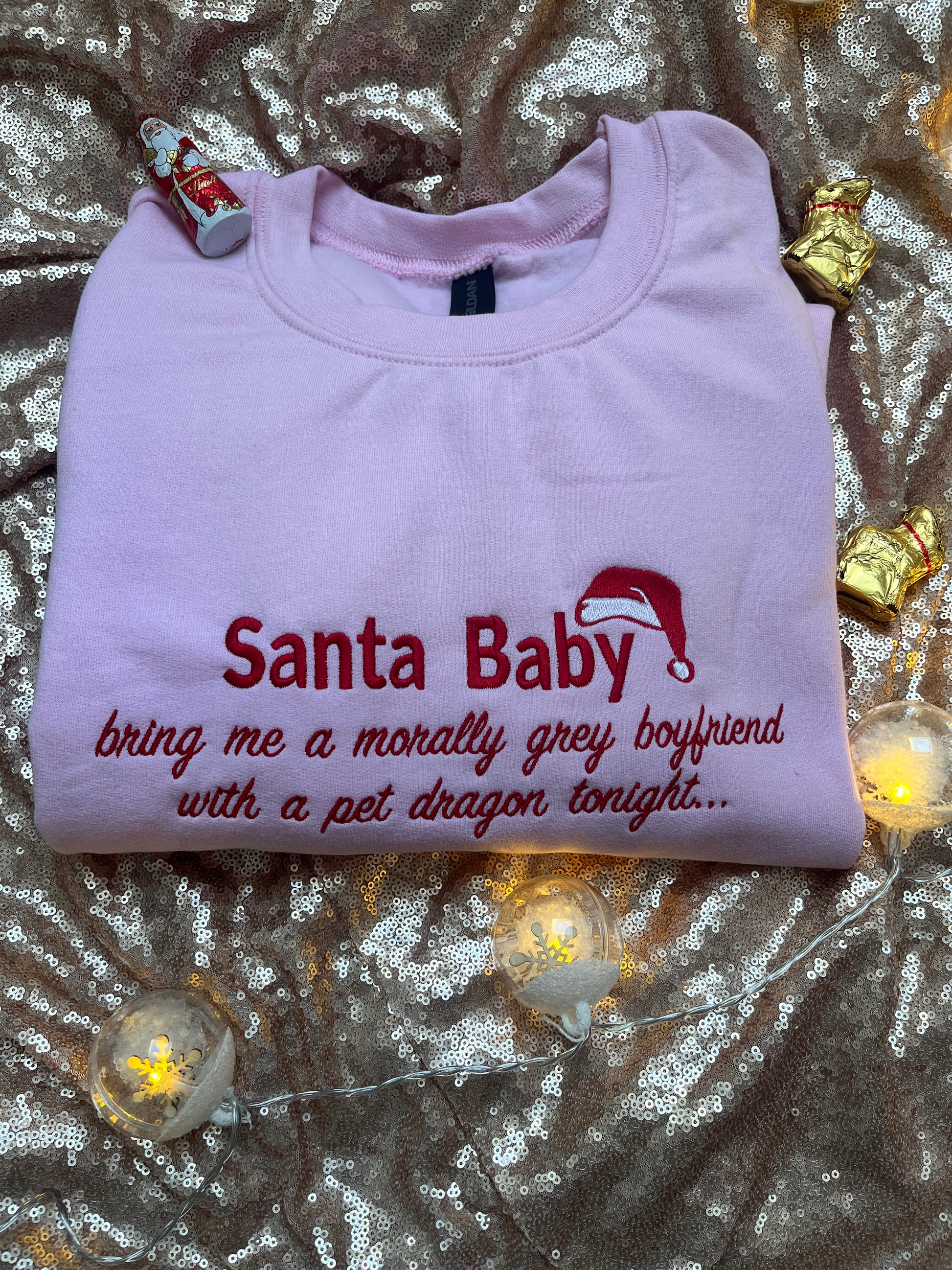 Enjoy the comfort of our Santa Baby embroidered sweatshirt, designed by us & embroidered by Tired Girl Apparel. This sweatshirt is not just a piece of clothing, but a statement. Made to order from this small UK business, it's perfect for those days where all you want to do is curl up with a good book.