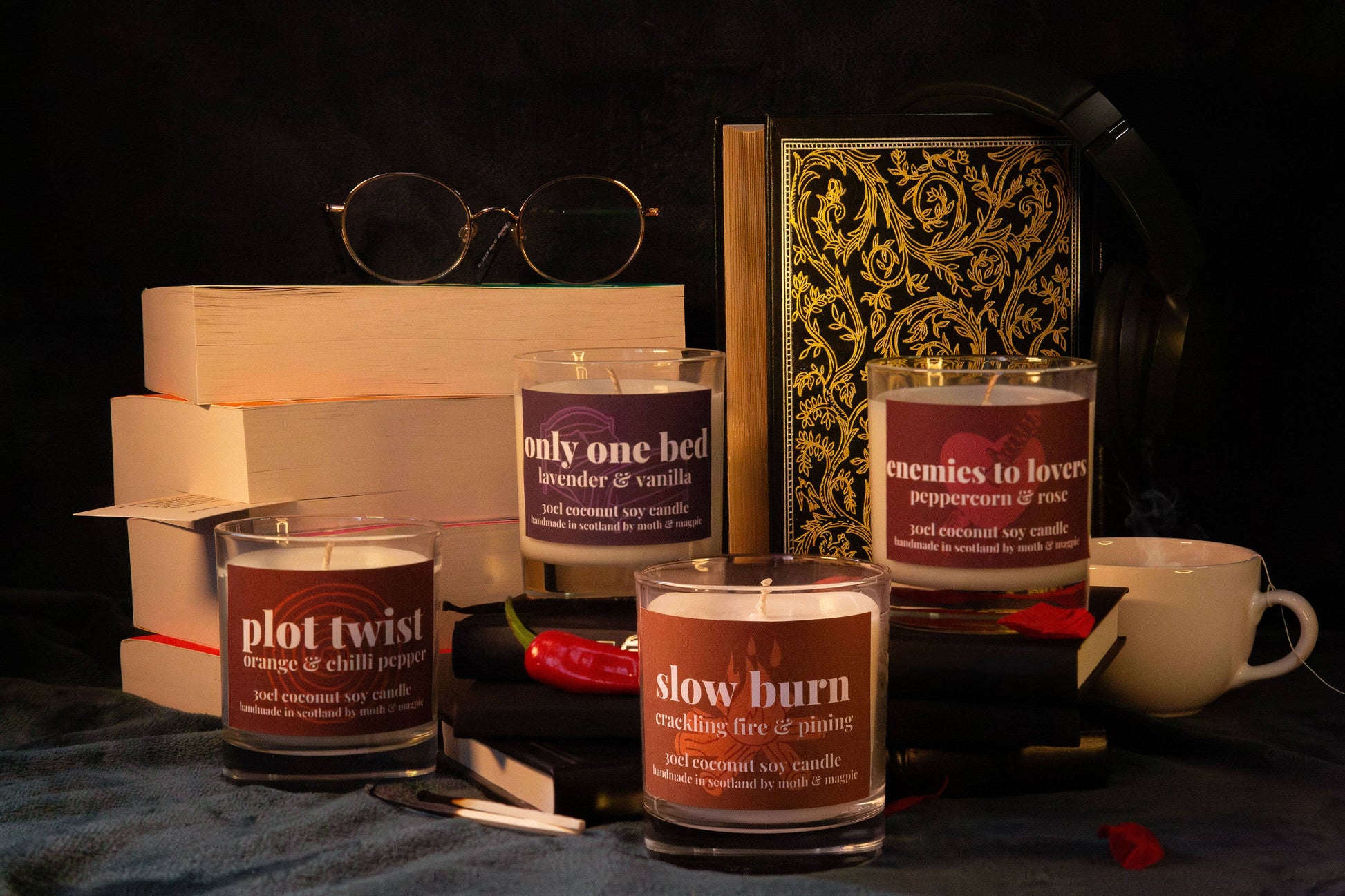 Inspired by the classic book trope, "Plot Twist" is scented with sweet orange and chilli pepper. Zesty and fresh, keeping you on your toes and invigorated for one more chapter. 30cl candle handmade in Scotland with a natural coconut soy wax blend, and scented with high quality fragrance oil designed for great-smelling candles. Includes wooden lid to keep candles looking fresh and smooth. All orders come with SDS, plus CLP attached to each unit. If you require any information on our fragrances (e.g allergens) before you buy, please get in touch!