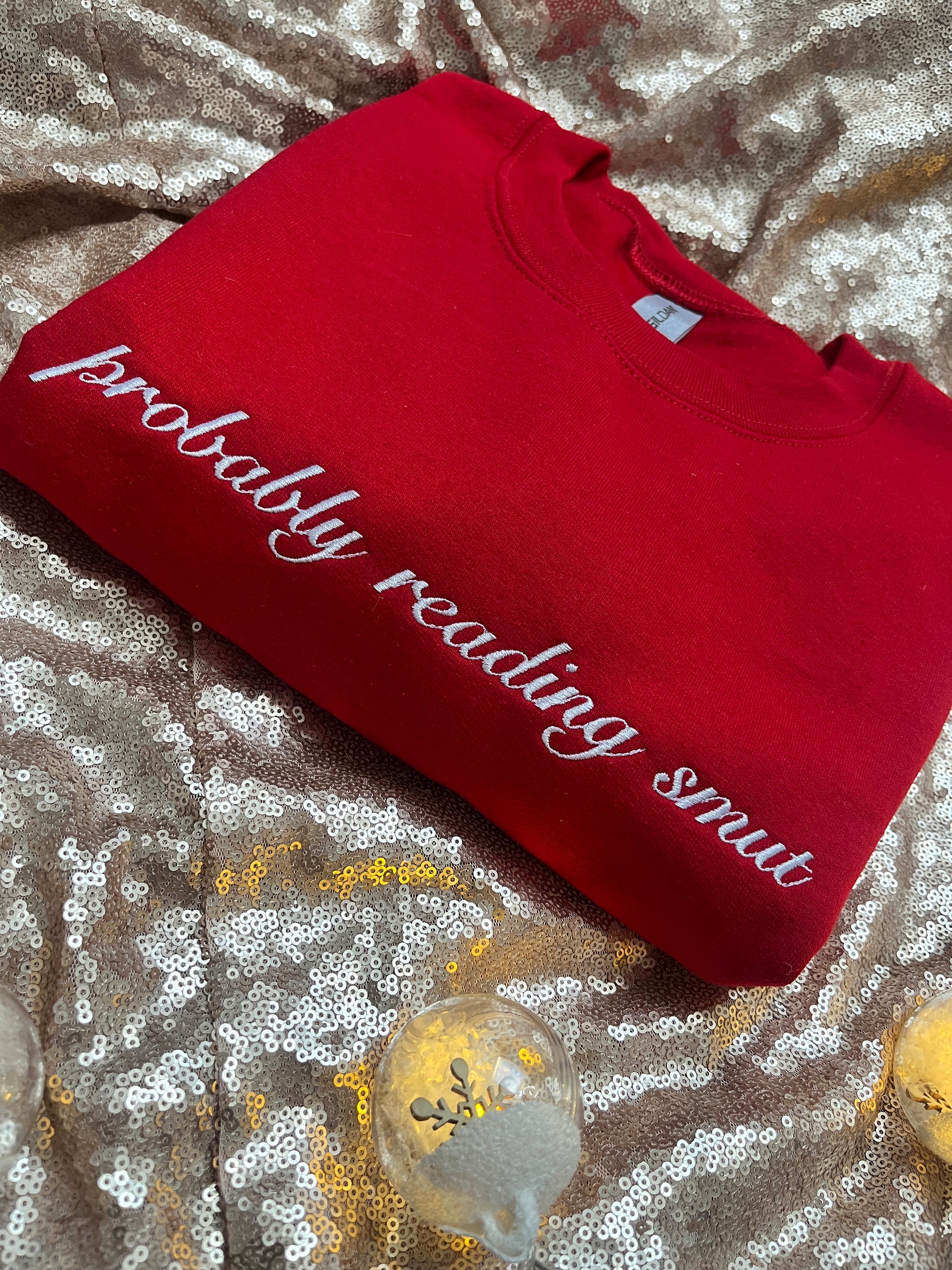 Enjoy the comfort of our Probably Reading Smut embroidered sweatshirt from Tired Girl Apparel. This sweatshirt is not just a piece of clothing, but a statement. Made to order from this small UK business, it's perfect for those days where all you want to do is curl up with a good book.